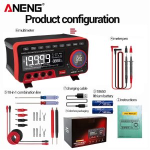 ANENG AN999S Multimètre de Table – Bluetooth – 19999 Points – Appareil de mesure numérique professionnel à transistors, à plage autorisée et à valeur efficace.