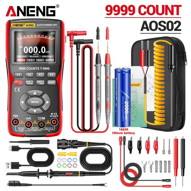 ANENG AOS02 Multimètre de test de transistor d’oscilloscope numérique 48 MS/s Taux d’échantillonnage 10MHZ Support de bande passante analogique Stockage de forme d’onde