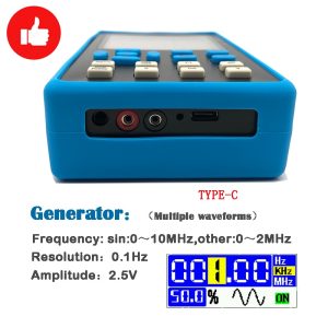 L’oscilloscope peut produire une variété de formes d’onde de 2.5V amplitude comme ondes sinusoïdales, ondes carrées, triangle vagues, demi vagues, single vagues, parmi lesquels le réglage de la fréquence gammes de sine waves est 0 ~ 10MHz, la fréquence des gammes d’autres formes d’onde est 0 ~ 2MHz, Et la précision est jusqu’à 0.1Hz. Générateurs de signaux sont largement utilisés, tels que des ondes carrées pour nouvelle sonde d’étalonnage, conduite MOS tube, etc., sinusoïdale vagues peut être utilisé pour les essais audio distorsion, etc.