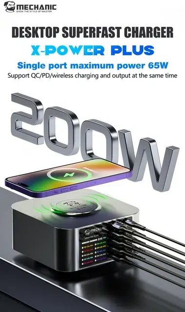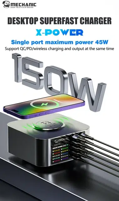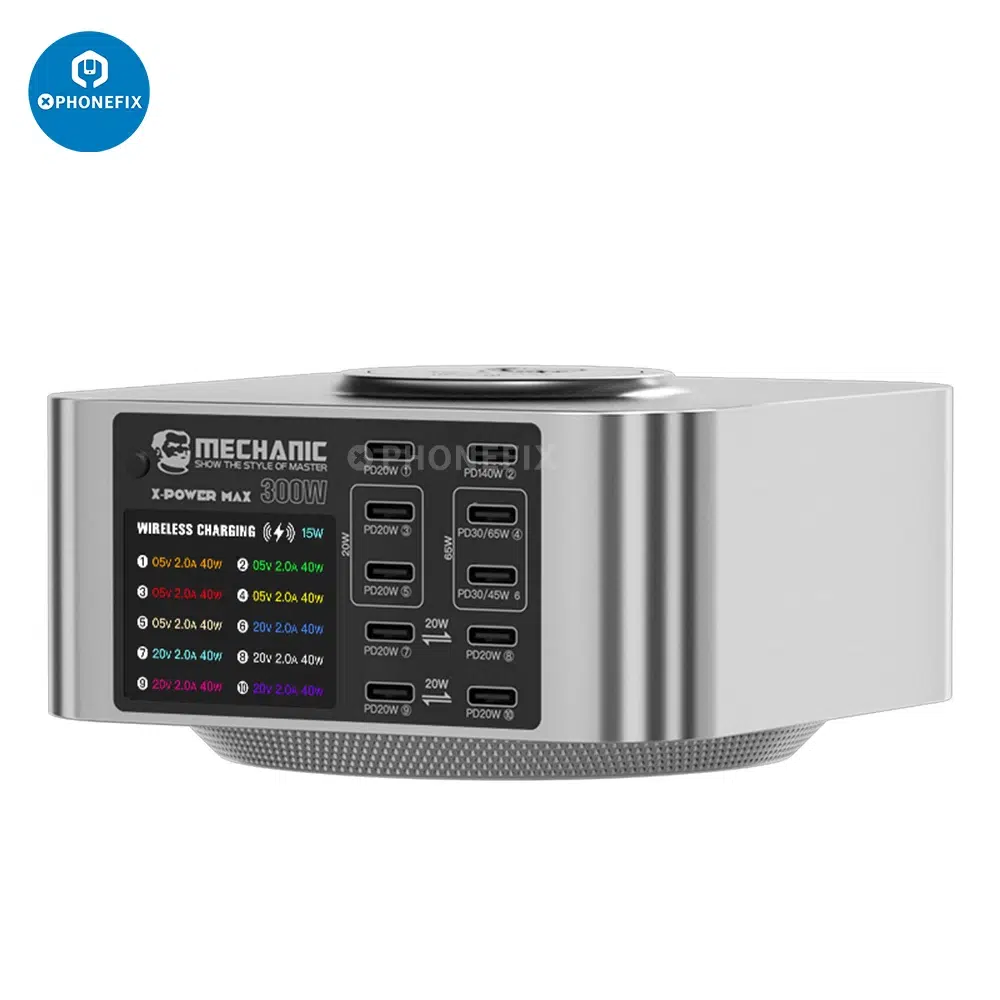 X-POWER mécanique Plus Max USB Type C Chargeur 10 ports Station de charge de bureau pour iPhone Huawei Xiaomi QC3.0 PD3.1 Chargement sans fil 150 W 200 W 300 W Chargeur rapide pour ordinateur portable et tablette.